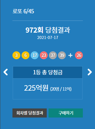 마침, 최근 조국 (1965~) 前 법무부장관 의 아내 인 동양대학교 교수 정경심 (1962~) 의 1심 결과 (징역 4년, 벌금 5억 원)가 나왔기에 해당 사건을 검색해 봅시다. 로또972회당첨번호, 통계, 모음, 엑셀, 조회. 로또당첨결과 (당첨번호, 당첨금, 당첨인원, 지급기한, 당첨지역) 최신 당첨번호부터 ~ 원하는 회차의 로또당첨번호를 확인하실 수 있습니다.